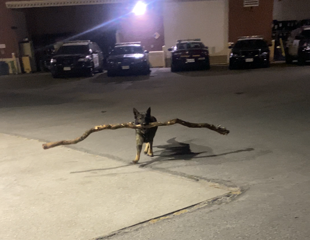 Officer Matt Williams, a six-year veteran with the Petaluma Police Department, serves as Pinky’s handler. They have been working together for over two years with Pinky living with Officer Wiliams while “off duty”.