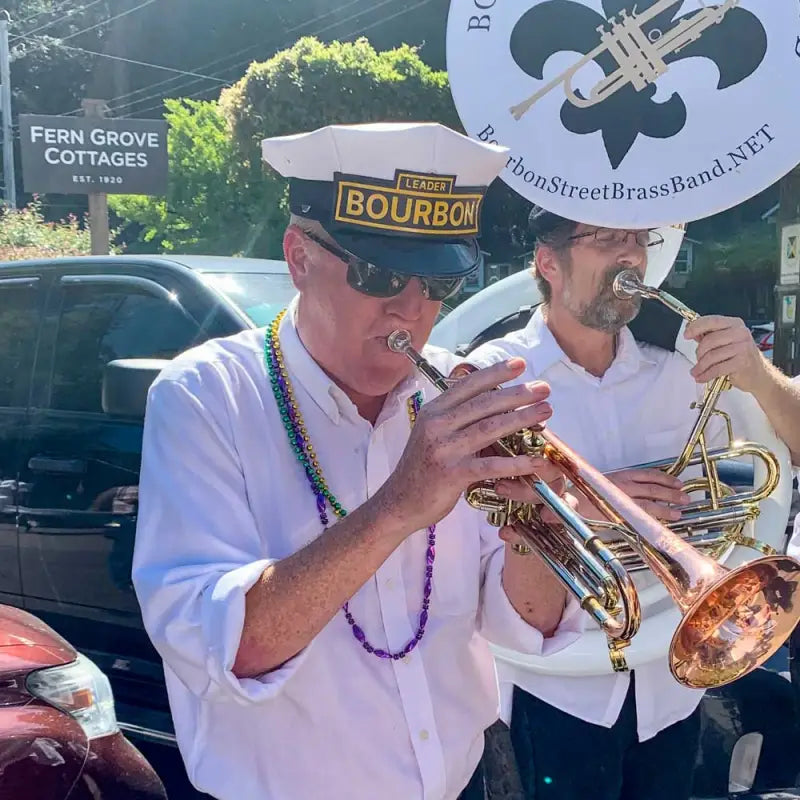 Bourbon Street brings the fun and funk of New Orleans Mardi Gras to life playing music that is instantly recognizable and makes you want to move! Audiences of all ages instantly feel the irresistible groove and funkiness of Bourbon Street Brass Band! Join in on the celebration and be a part of the daily parade. Follow the music of the Bourbon Street Brass Band…it just makes you feel good!